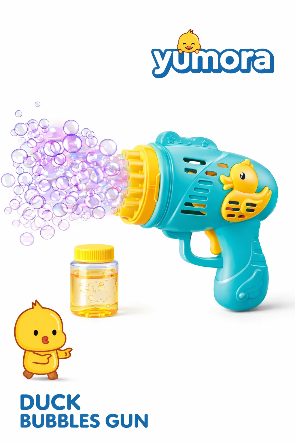 Yumora’nın sevimli tasarımıyla öne çıkan Duck Duck Baloncuk Tabancası, çocuklar için eğlenceyi tek tuşla başlatır! Renkli baloncuk yağmuru ve ördek figürlü tasarımıyla hem çocukların hem de ebeveynlerin favorisi olmaya aday.